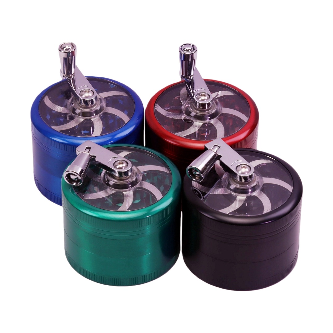 Premium Hand Crank Herb Grinder, Heavy Duty 4-Layer Zinc Alloy Metal Grinder, Manual Crank Tobacco Grinder with Pollen Catcher & Sharp Grinding Teeth