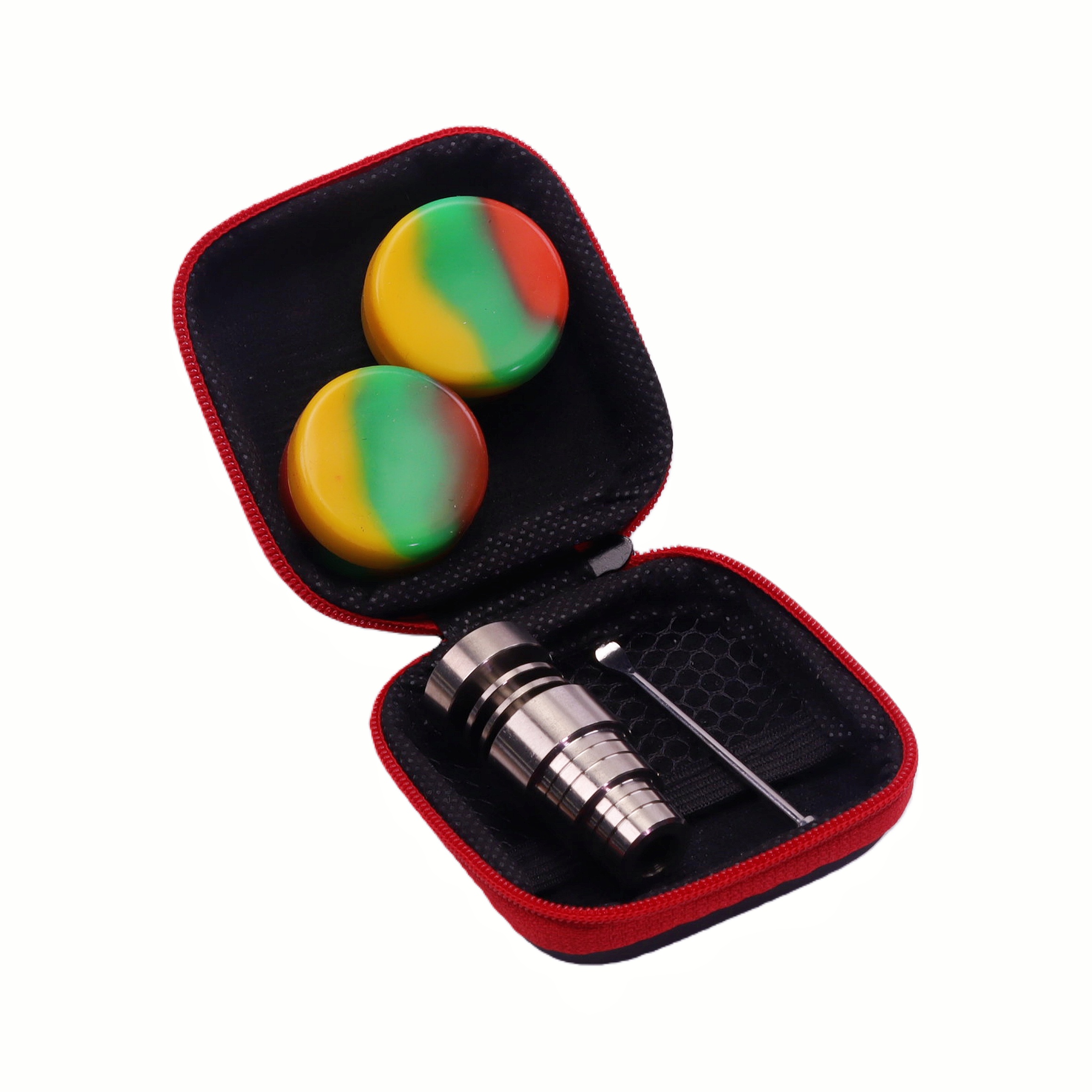 (5 pieces Including:1 PU Bag,2 Pieces(Silcone Jars, 1pc 4in1 Gr2 Universal Nail,1 pc Dabber Tool)