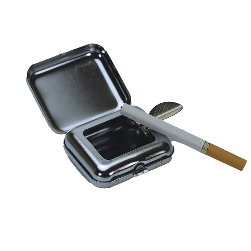 Mini Size Portable Push Type Spring Flip Lid Square Metal Mirror Finishing Ashtray